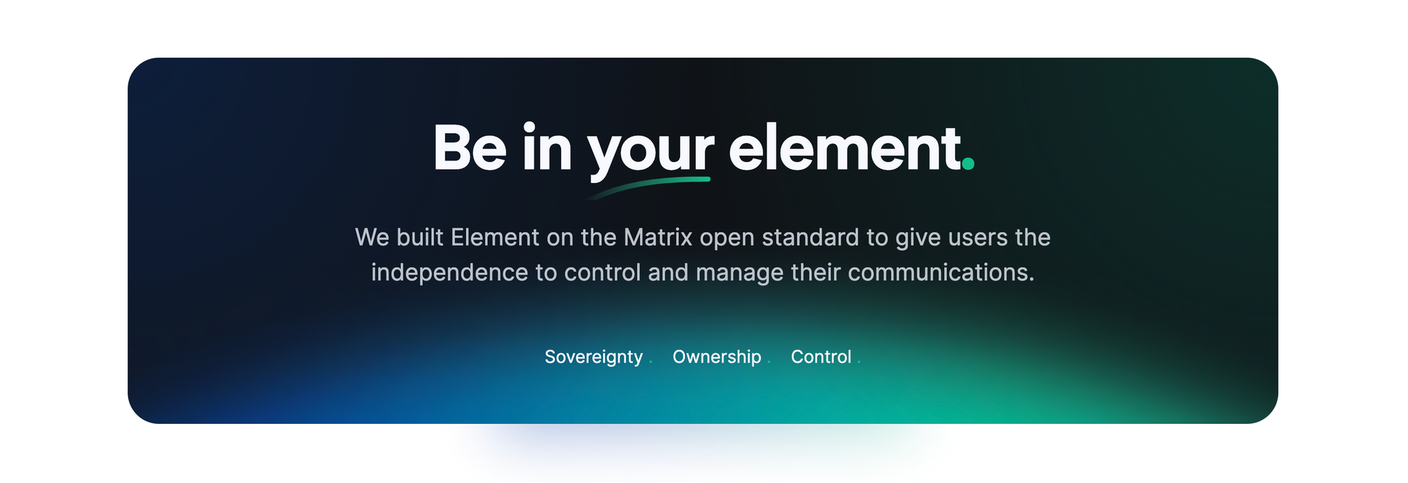 matrix.orghomeserver for free. - Element Cloud: A managed service for teams that want the benefits of Matrix without the server maintenance.
