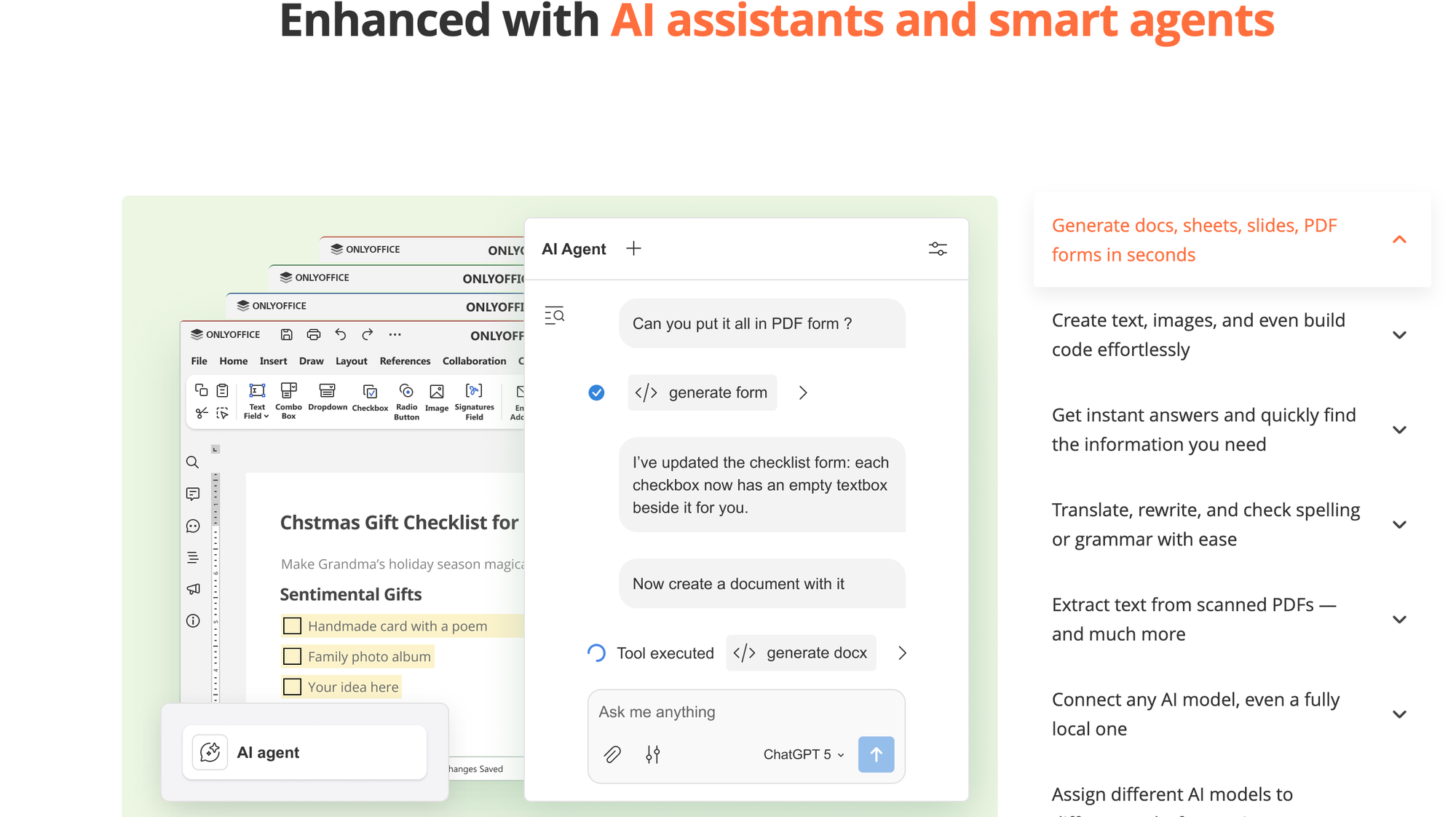 You get to choose which AI provider drives this, from OpenAI or Anthropic to local models like Ollama if you care about privacy and don’t want cloud calls. ONLYOFFICE