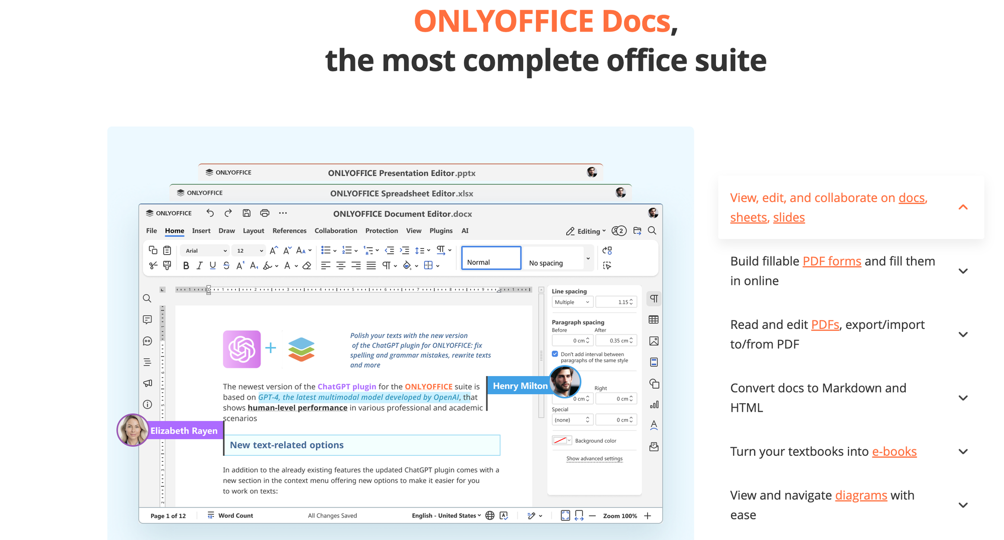 OnlyOffice Desktop Editors is a complete suite similar to Microsoft Office. The only difference is OnlyOffice is free, open source, reliable and easy to plugin any where. You can install on your Mac OS, Windows, Linux, or with your Nextcloud, Wordpress and many other platforms: It offers Variety of tools like -