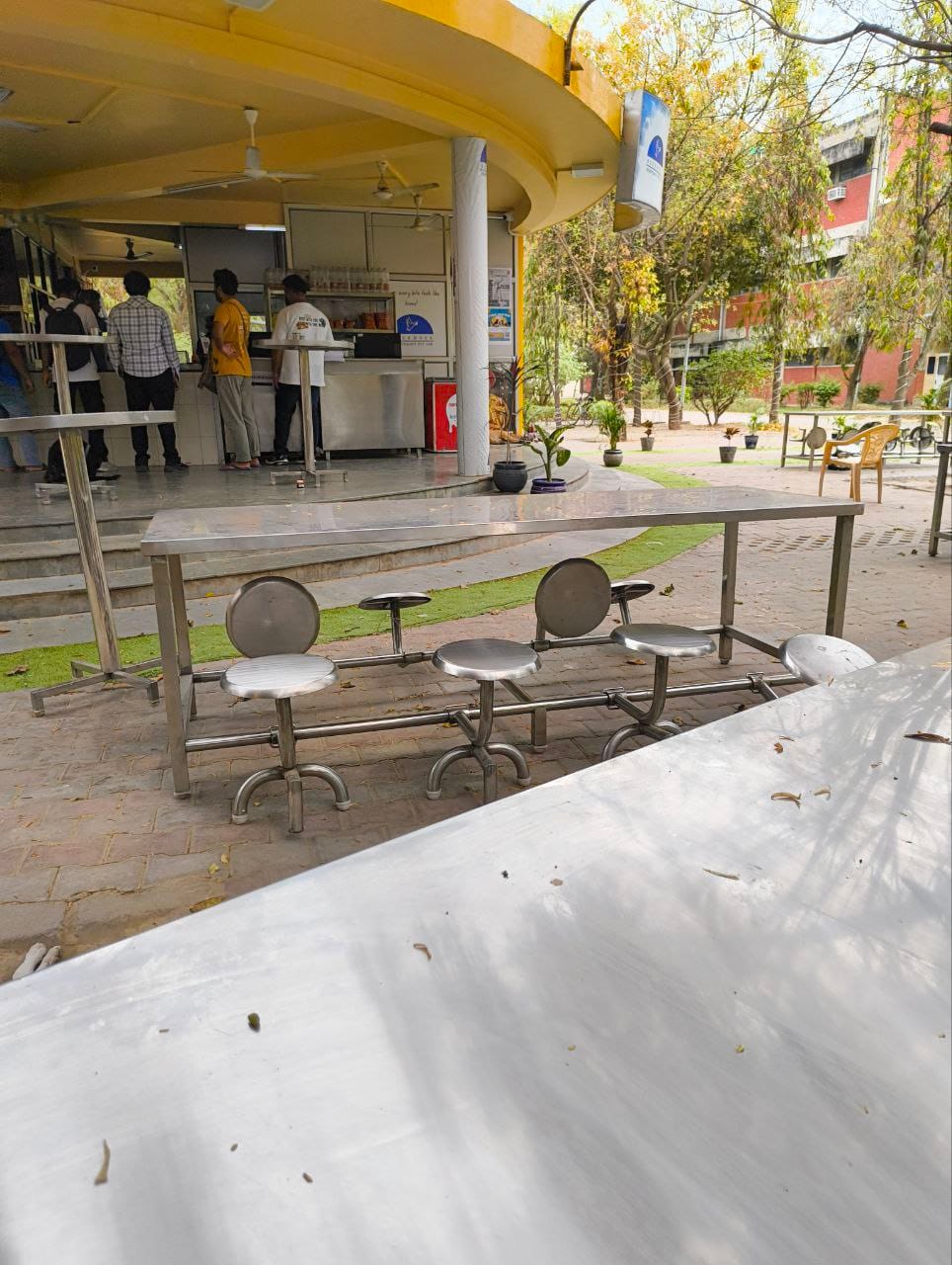 The next day in the morning, the security took much time compared to the first day. We went inside the campus and met few of people from the conference. We went together for the breakfast. Where I saw very weird kind of sitting area that can definitely harm anyone.
