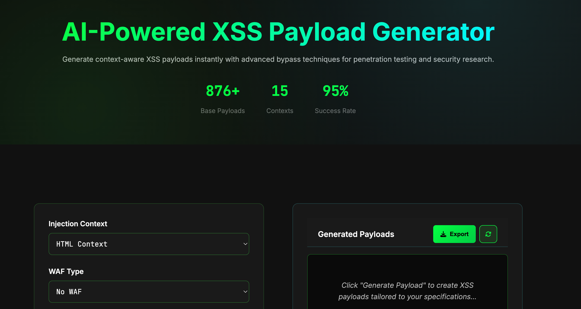 - A massive database of 876+ curated XSS payloads covering various real-world scenarios.